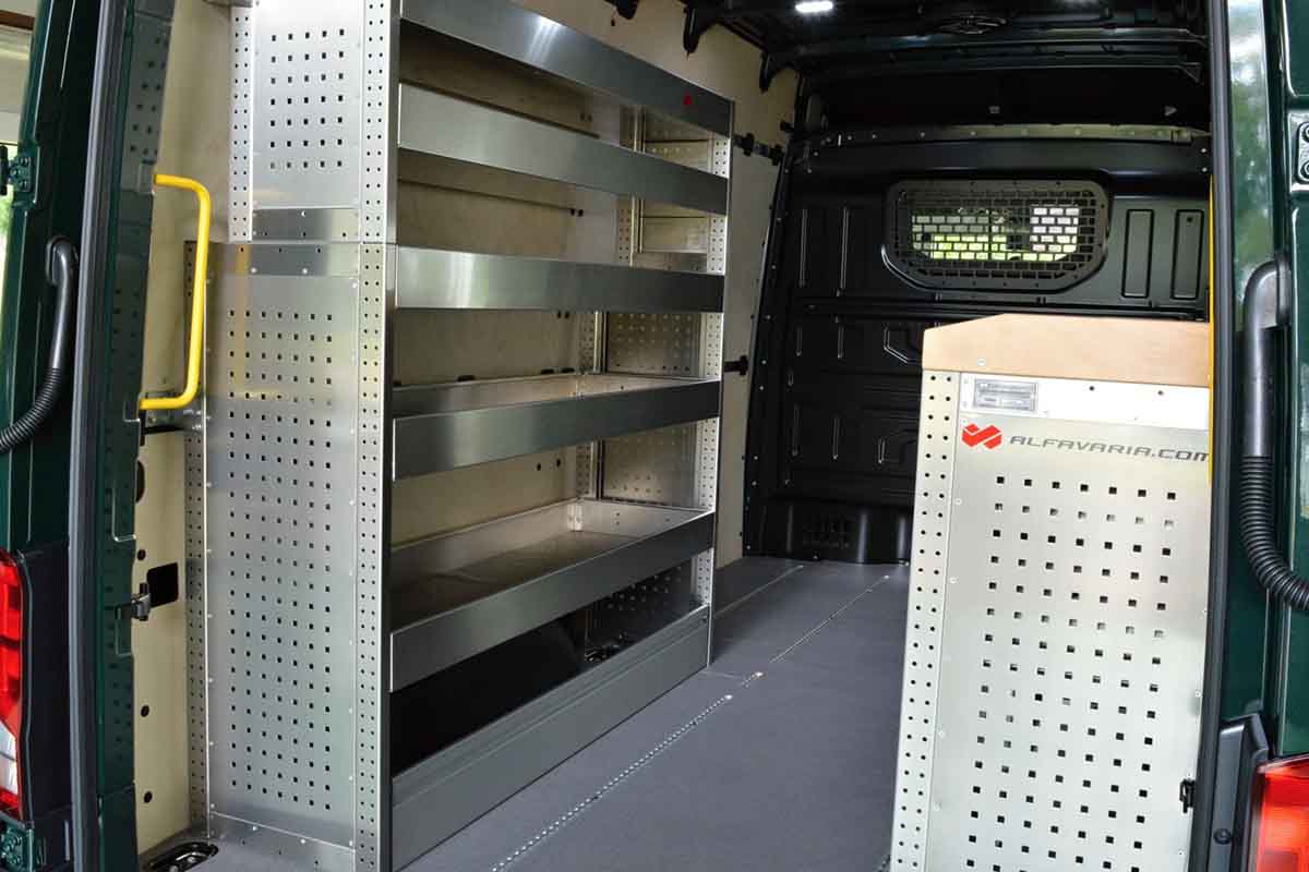 Představujeme vestavbu do dodávky VW Crafter 4×4. Zajímavostí u tohoto Volkswagenu je pohon 4×4 na všechny kola, díky nimž má vůz dobrou terénní prostupnost a dobře se dostane na místa s nezpevněnou vozovkou. Do užitného prostoru jsme navrhli a montovali policové regály na jednu stranu auta, na pravé straně modul se zásuvkami a dřevěnou krycí deskou.
