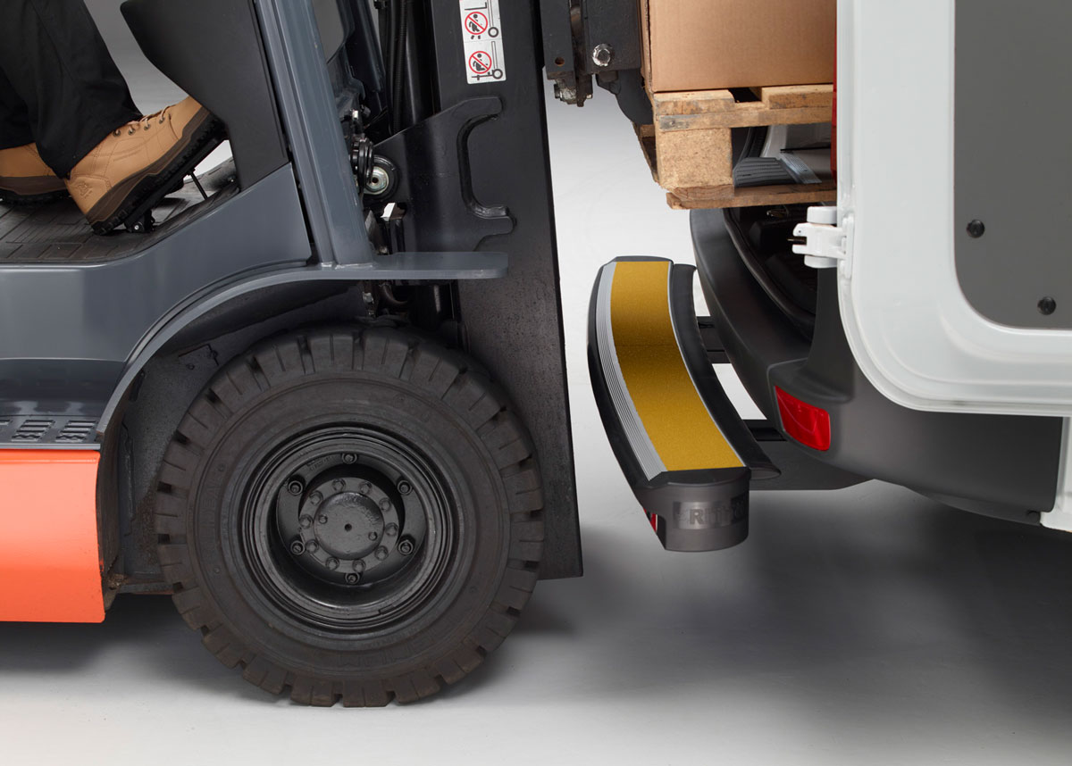 Snižuje riziko poškození zadní části karoserie při parkování nebo manipulaci s nákladem. Schod s tlumením nárazu výrazně redukuje náklady na opravy karoserií a s tím spojené prostoje vozidel, což vede ke znatelným úsporám, zejména u větších vozových fleetů.