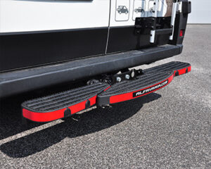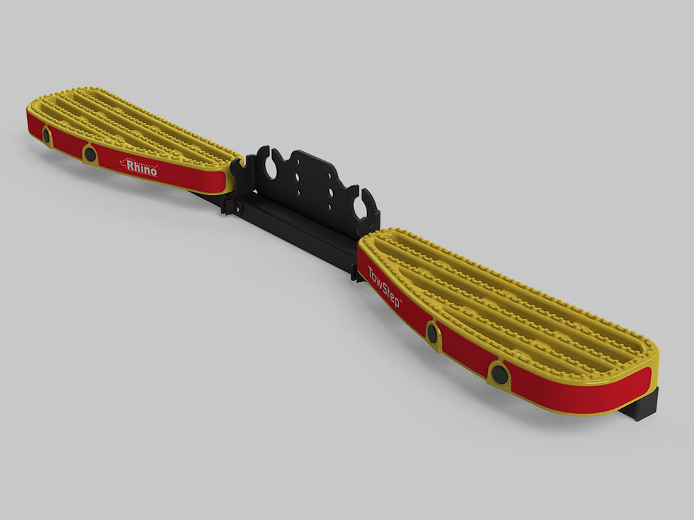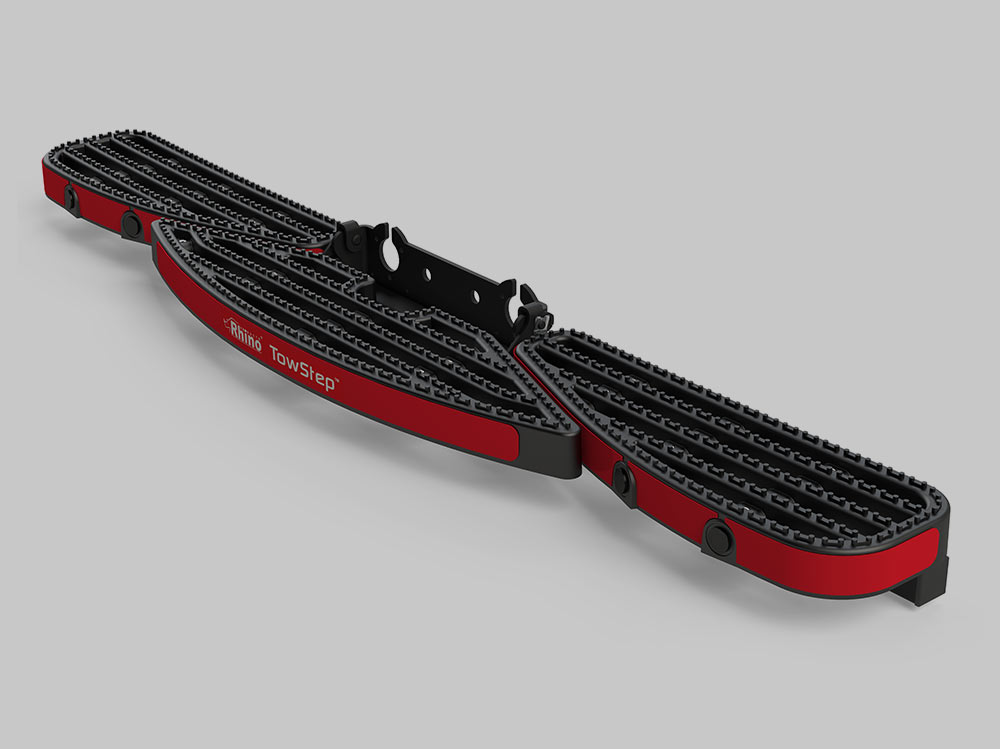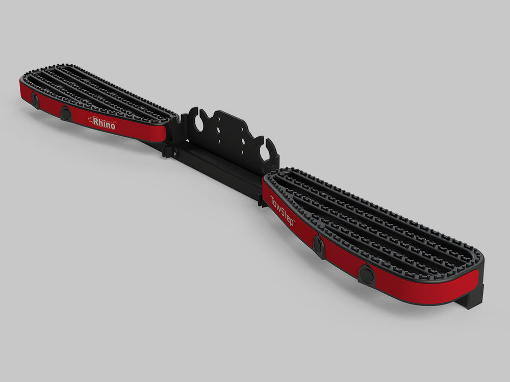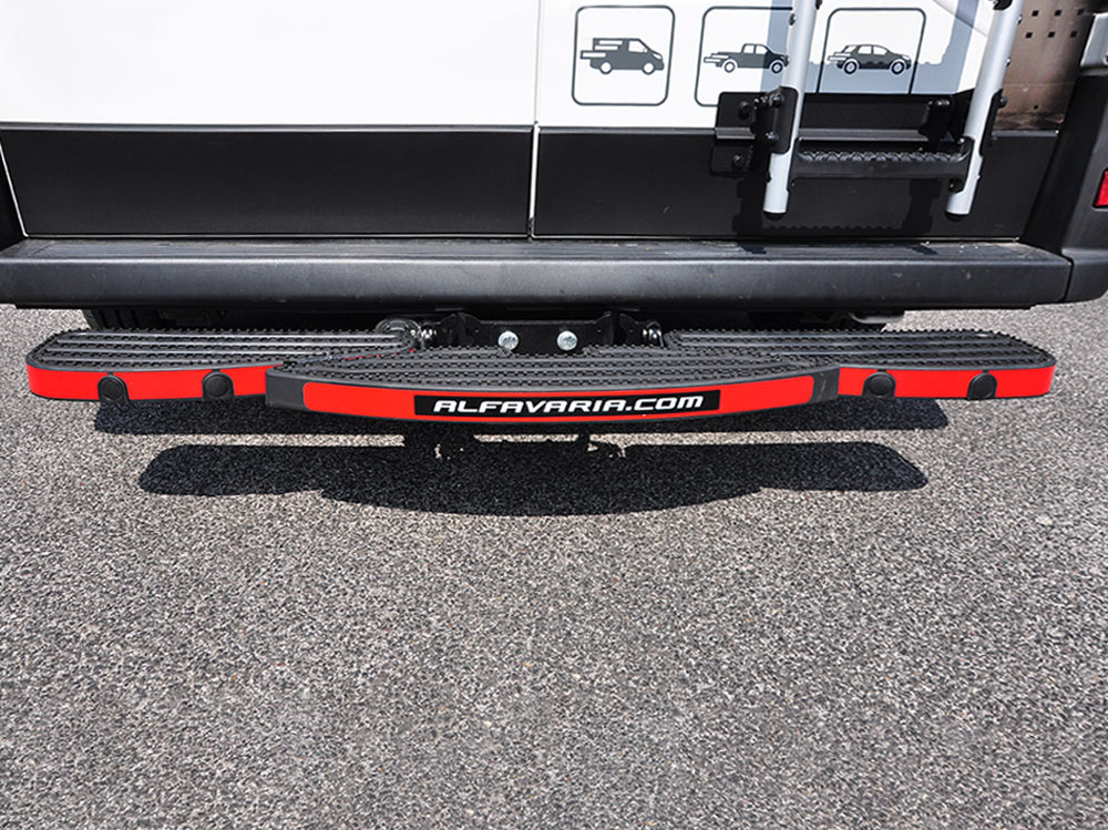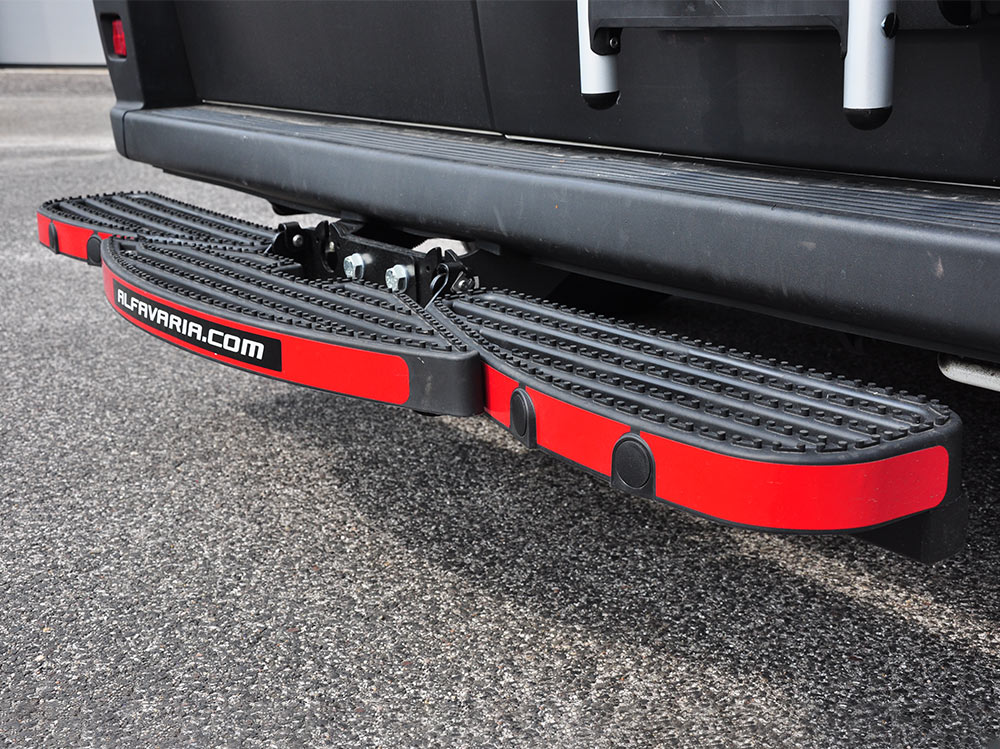 Schod na tažné zařízení je zadní nástupní schod s odnímatelnou středovou částí umožňující snadné připojení přívěsu. Pomocí dodávaných šroubů lze schod bez problémů namontovat na jakékoli tažné zařízení přírubového typu.
