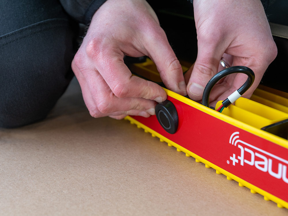- Každý senzor se zacvakne do kabelového svazku dodávaného s nástupním schodem Rhino