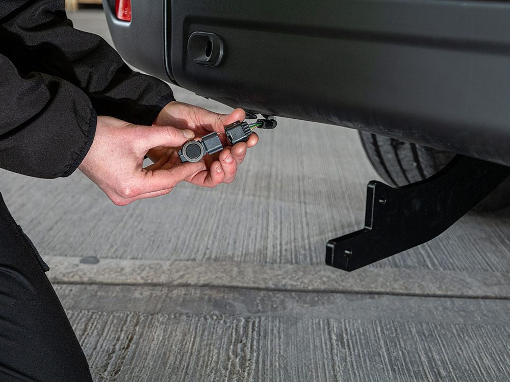 - K dispozici s nebo bez parkovacích senzorů, nebo se sadou pro snadné propojení parkovacích senzorů a bezproblémovou integraci stávajících OEM parkovacích senzorů vozidla do schodu prostřednictvím jednoduchého řešení „plug and play“ (k dispozici pro vybrané typy dodávek)