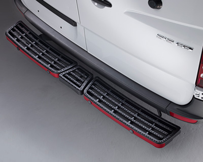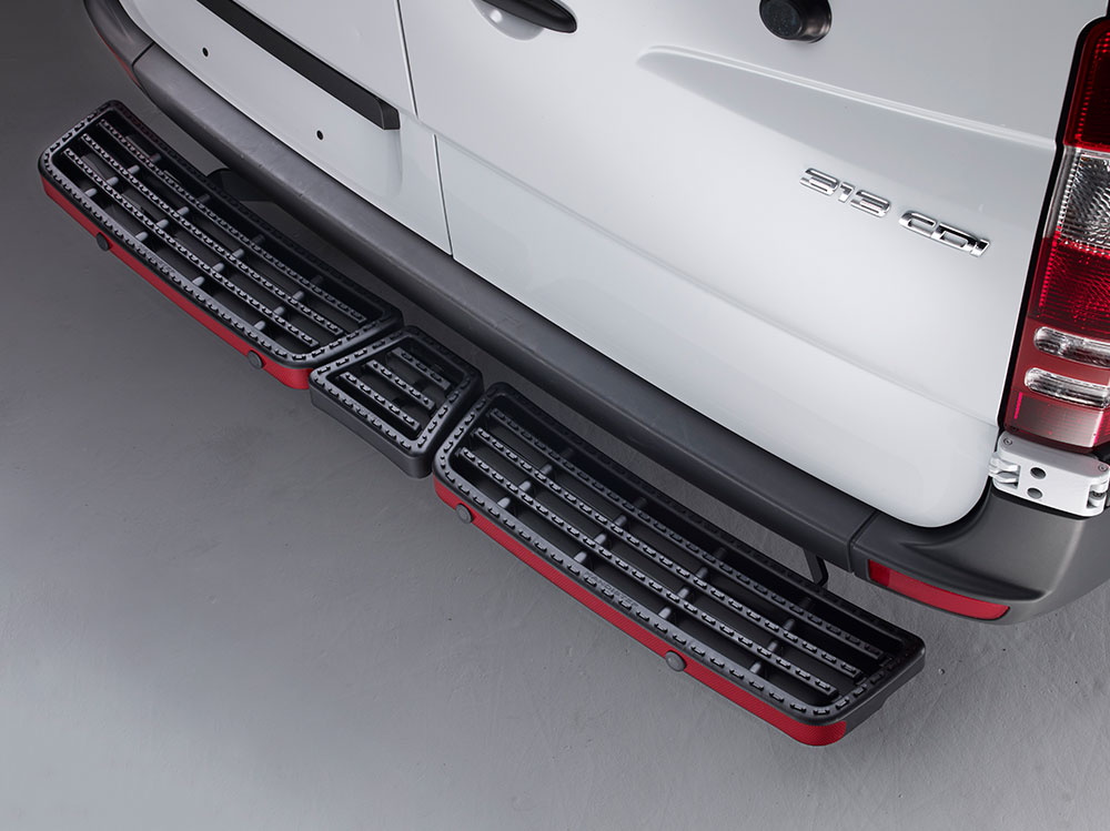 - Provedení schodu po celé šířce dodávky s bezpečnou nášlapnou plochou