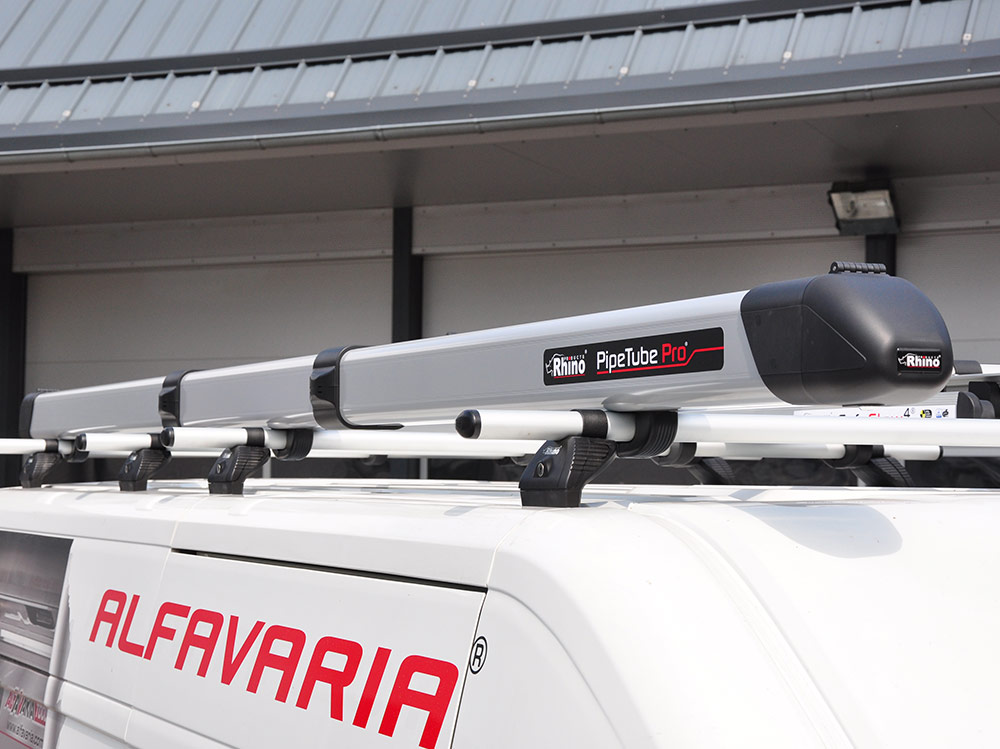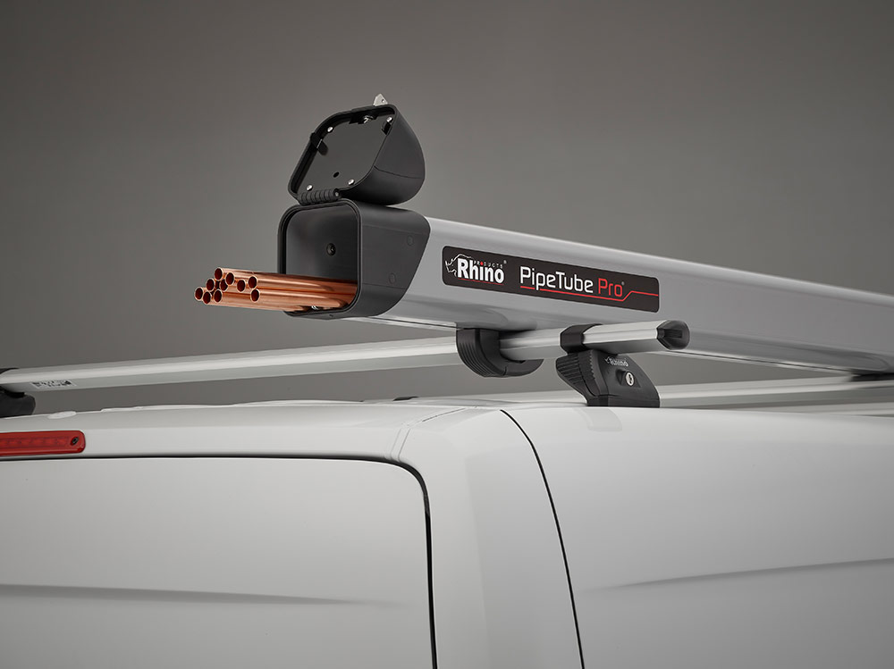 Střešní trubicový nosič značky Rhino je předním evropským systémem pro bezpečnou přepravu měděných nebo plastových trubek a jiných podlouhlých materiálů.