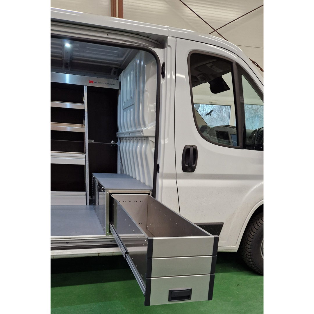 Jedním z hlavních cílů této realizace bylo vytvořit prostředí, které usnadňuje každodenní práci. Představte si, že jste řemeslník nebo technik a máte před sebou náročný den plný zakázek. Jakmile otevřete zadní dveře svého vozu, vše, co potřebujete, je přehledně uspořádáno a snadno přístupné. Nemusíte ztrácet minuty hledáním potřebného nářadí nebo materiálu – každá věc má své přesně určené místo.