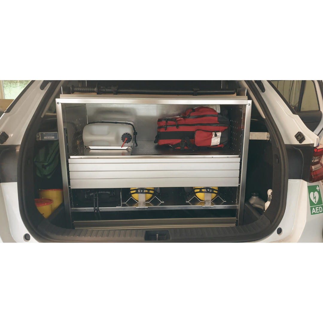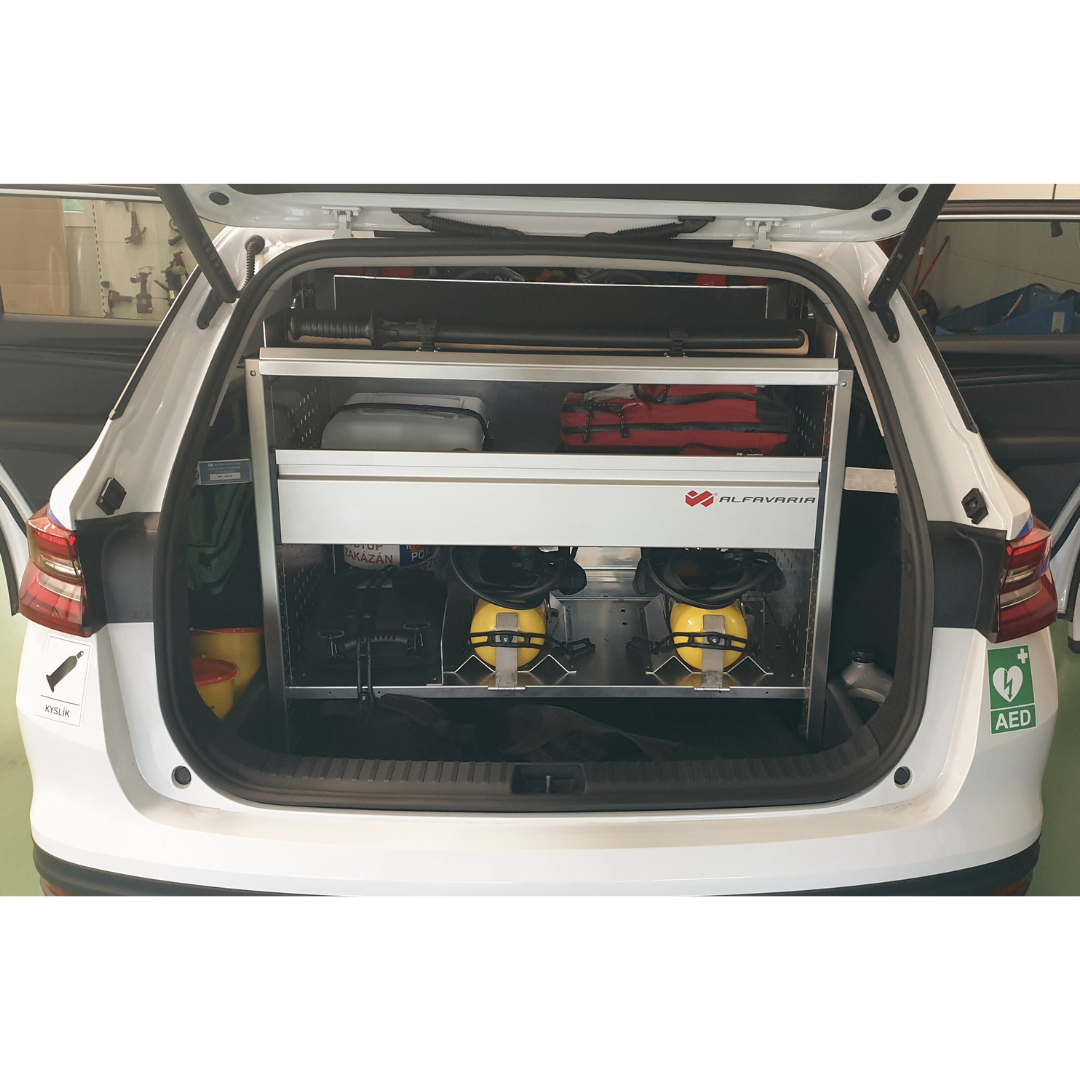 Představujeme vám naši další realizaci – precizně navrženou auto vestavbu do zásahového vozidla městské policie, určenou speciálně pro model Škoda Kodiaq. Tento projekt byl zrealizován s ohledem na specifické požadavky našeho zákazníka a přináší inovativní řešení, která zohledňují všechny potřeby efektivního uložení výzbroje a výbavy zásahového vozidla.