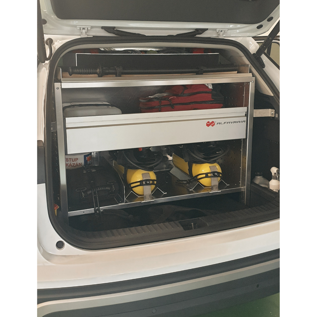 Zveme vás k prohlídce naší galerie, kde můžete nahlédnout do detailů tohoto zakázkového řešení. Věříme, že se nám podařilo vytvořit vestavbu, která nejenže splňuje specifické potřeby městské policie, ale také přináší novou úroveň organizace a efektivity do jejich každodenní práce. Naše vestavba do vozidla Škoda Kodiaq je více než jen úložný systém – je to přínosný nástroj pro moderní městskou policii, která je připravena rychle reagovat na jakoukoli situaci.