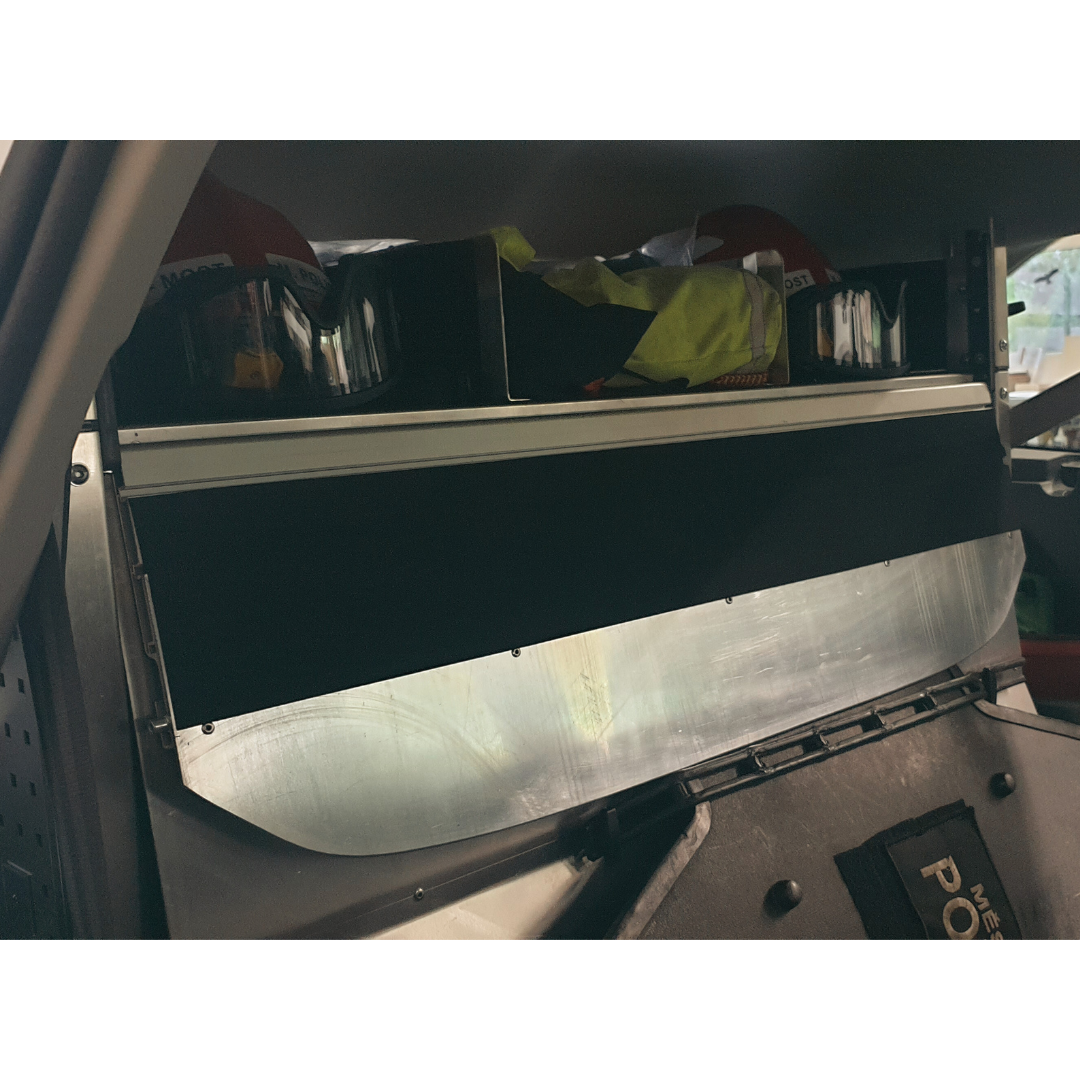 Při návrhu této vestavby jsme rovněž zohlednili ergonomické aspekty, které přispívají k pohodlí a bezpečnosti policistů během jejich náročné služby. Uložení vybavení je navrženo tak, aby minimalizovalo fyzickou námahu při jeho vyjímání a vracení zpět, čímž se snižuje riziko úrazů a zvyšuje se efektivita celého týmu.