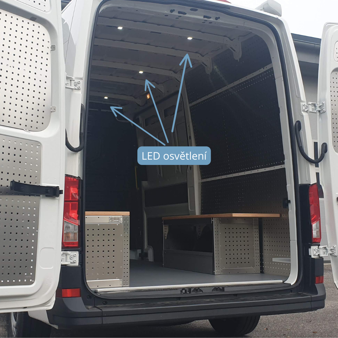 Další, sice na pohled trochu jednodušší, ale velmi povedená auto vestavba z naší dílny – auto vestavba do dodávky VW Crafter. Toto vozidlo, vyrobené na míru pro obchodního zástupce, je více než jen obyčejným vozidlem. Je to automobil a výkladní skříň zároveň. Proto jsme tuto vestavbu navrhli tak, aby byla nejen praktická a funkční, ale také elegantní a stylová.