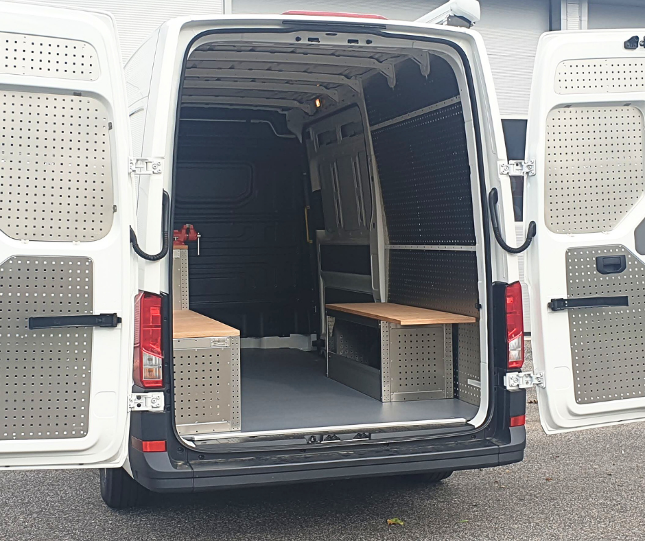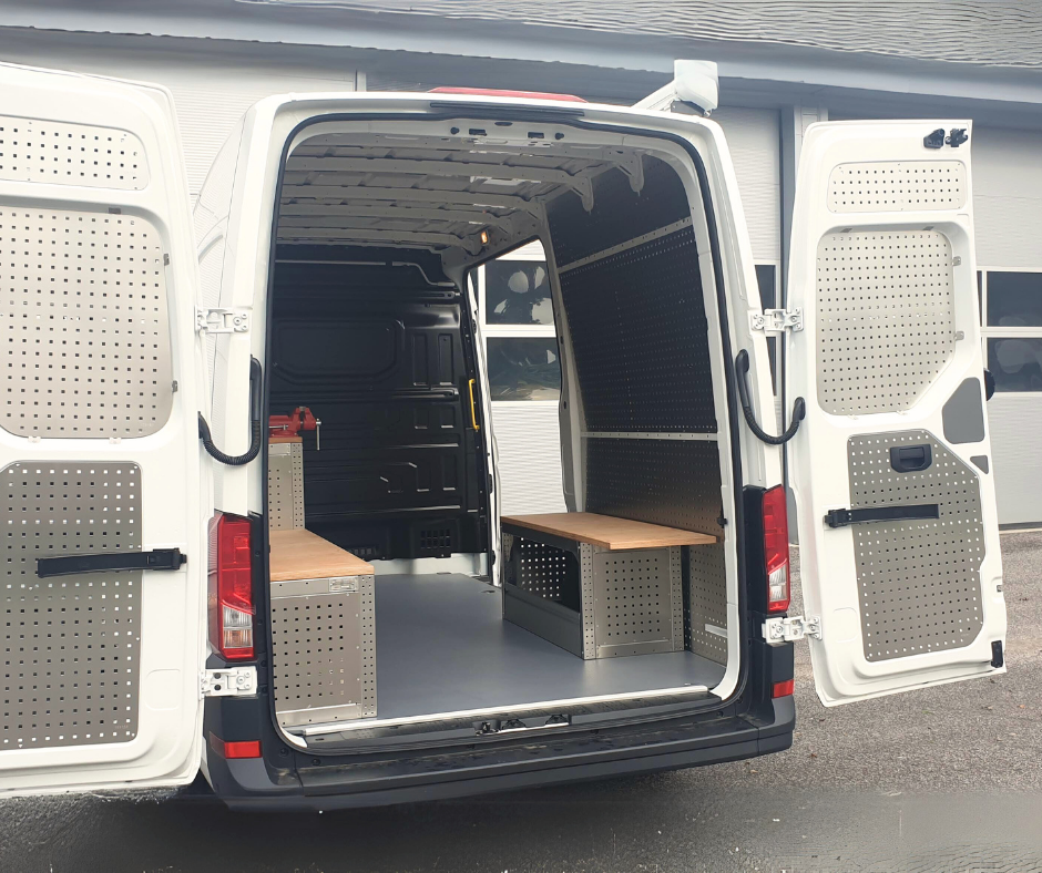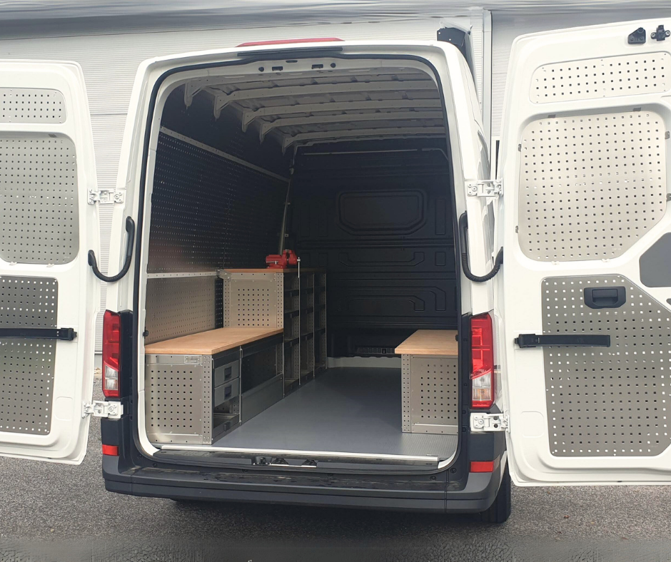 Vůz VW Crafter s touto vestavbou je ideální volbou pro obchodního zástupce. Je to vozidlo, které představuje nejen elegantní design, ale také praxi a funkčnost.