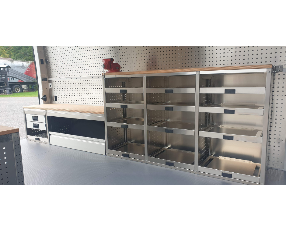 Vestavba je vyrobena z hliníku, což ji činí lehkou, ale zároveň velmi bytelnou. Jedná se o materiál, který je pevný, odolný vůči korozi a přitom velmi lehký, takže zbytečně neubírá užitečné zatížení vozidla.