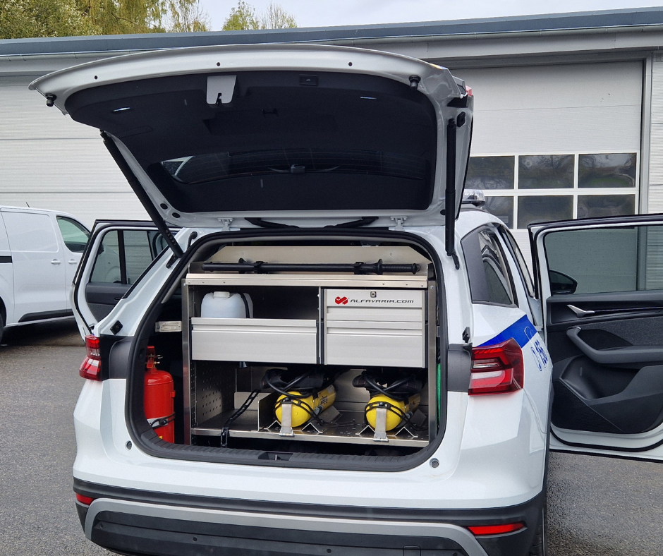 Představujeme další zajímavou auto vestavbu, na kterou jsme skutečně hrdí – kompletní vestavbu do zásahového vozu městské policie, Škoda Kodiaq.