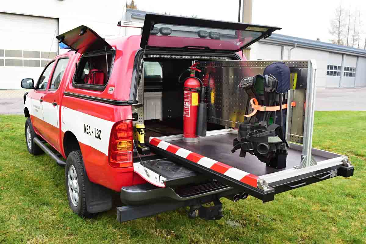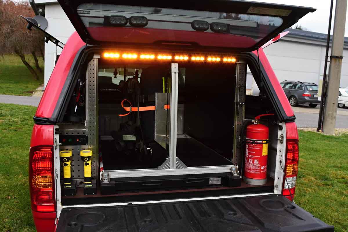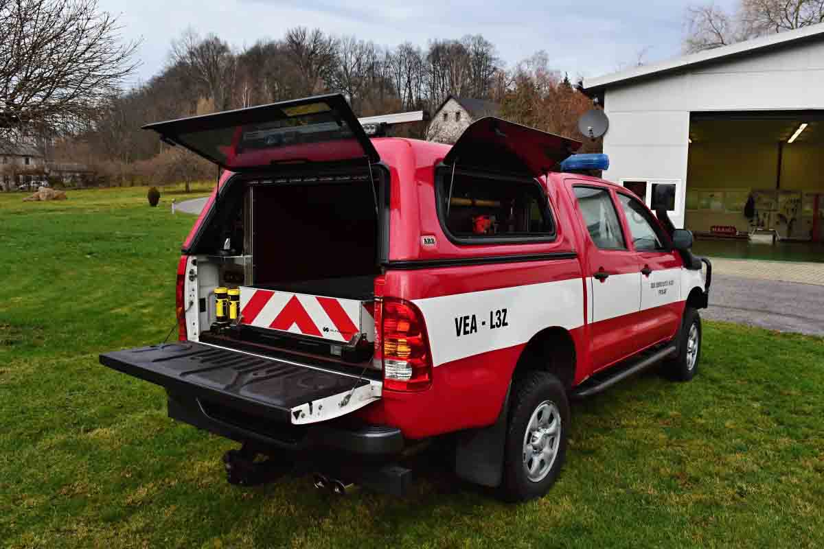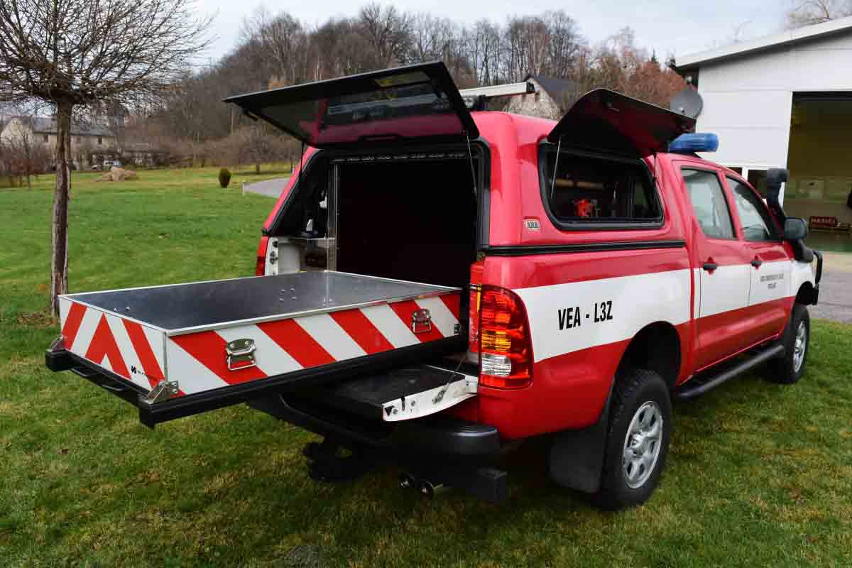 Zakázková vestavba do vozidla Toyota Hilux pro potřeby SDH.