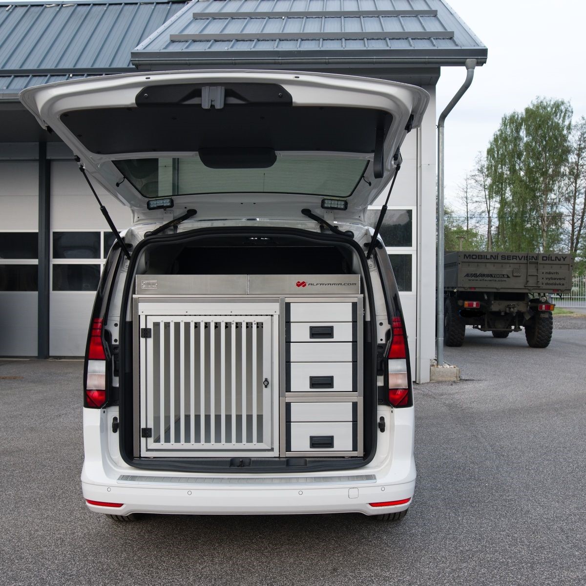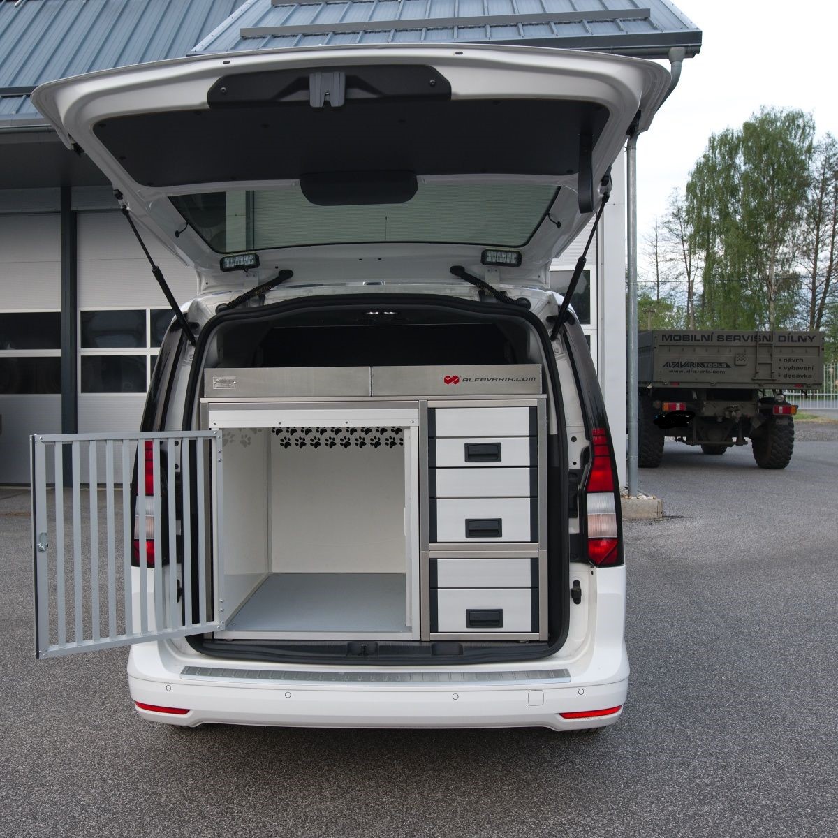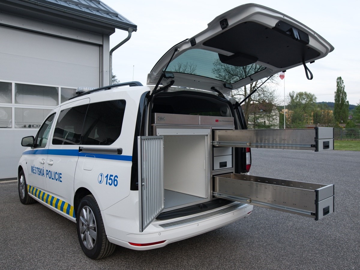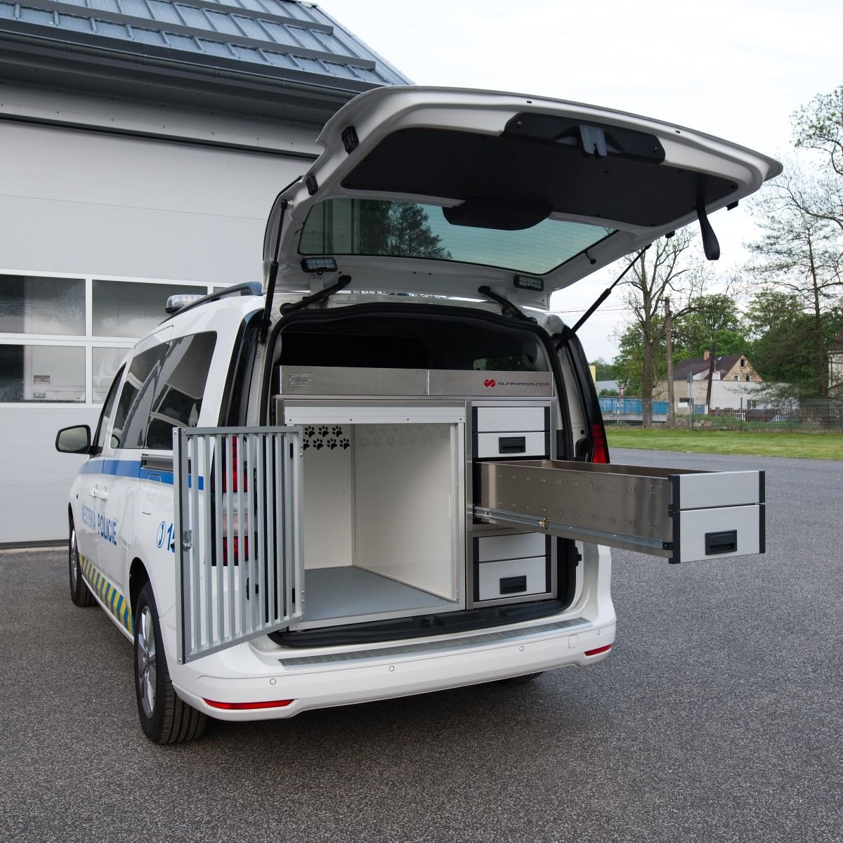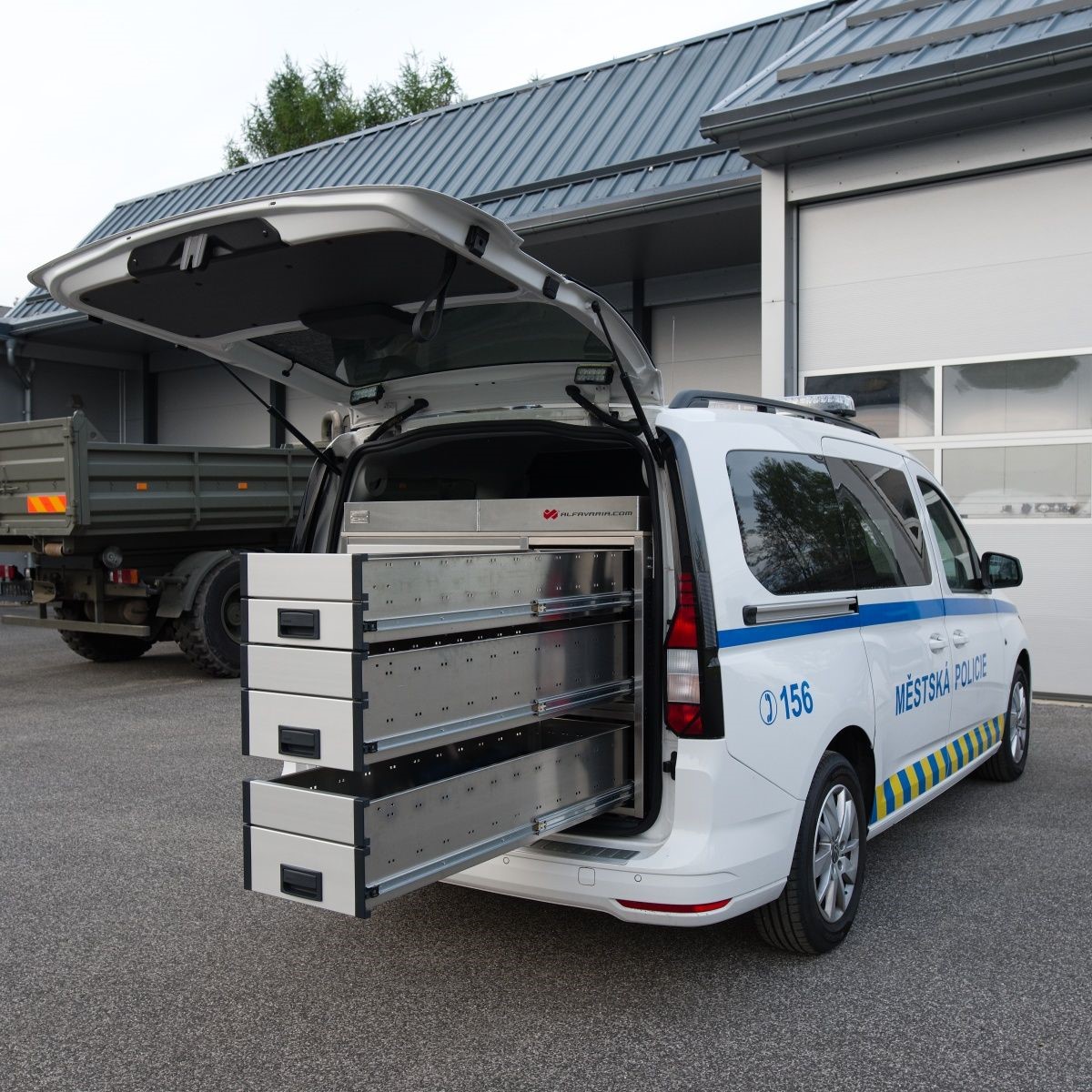 Naší dílnu právě opustila další parádní vestavba. Vozidlo bude sloužit u Městské policie. Vestavba byla navržena a vyrobena dle zadání a potřeb uživatele. Za povšimnutí na této vestavbě stojí provedení zásuvek, které lze 100% vysunout (umíme délku až 1650 mm se 100% výsuvem) a celkově obestavený prostor ve vozidle, kde je doslova využitý každý cm. Zásuvky je možné snadno rozdělit do jednotlivých sekcí pomocí předpřipraveného systému přepážek. Plošné zatížení každé zásuvky je až 80 kg a to při plném vysunutí. Nad vestavbou je dle přání zákazníka vyrobena hliníková odkládací police s ochranným rámem. Za nás velmi povedená vestavba! Prohlédněte si přiložené fotky.