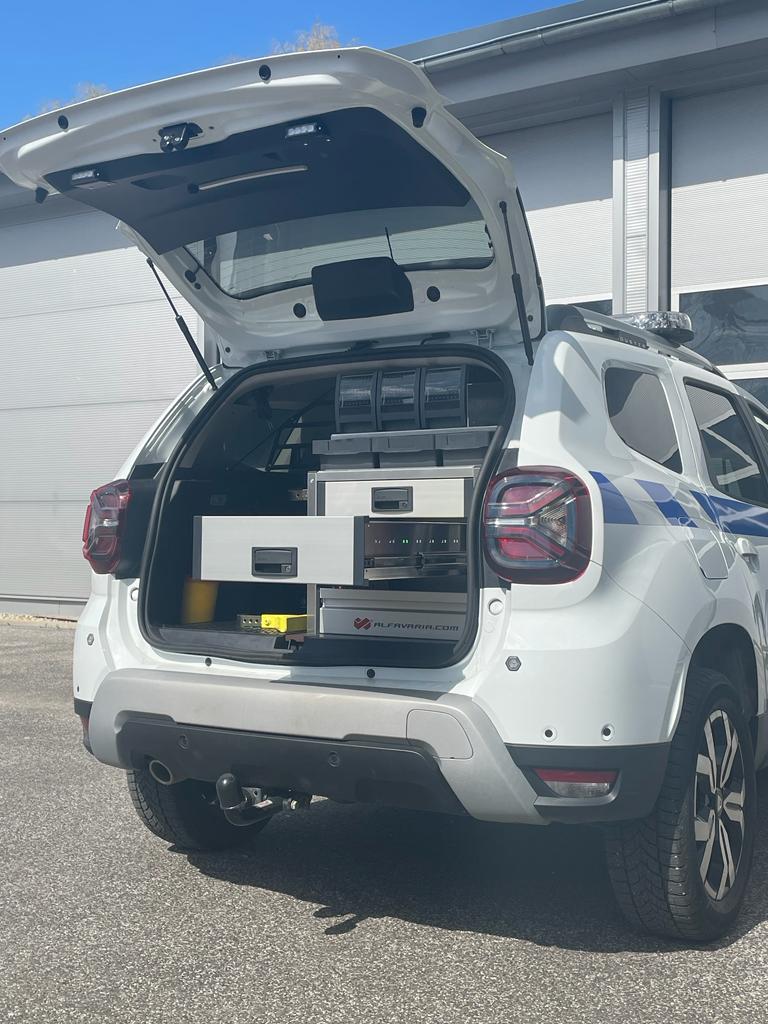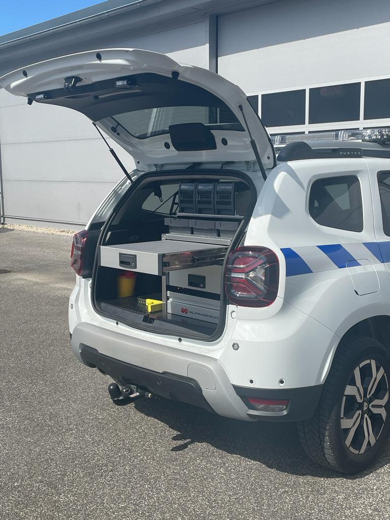 Chytře řešená zakázková vestavba do vozidla Dacia Duster pro městskou policii.