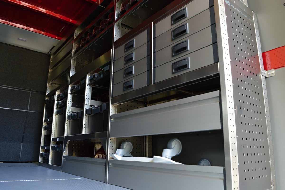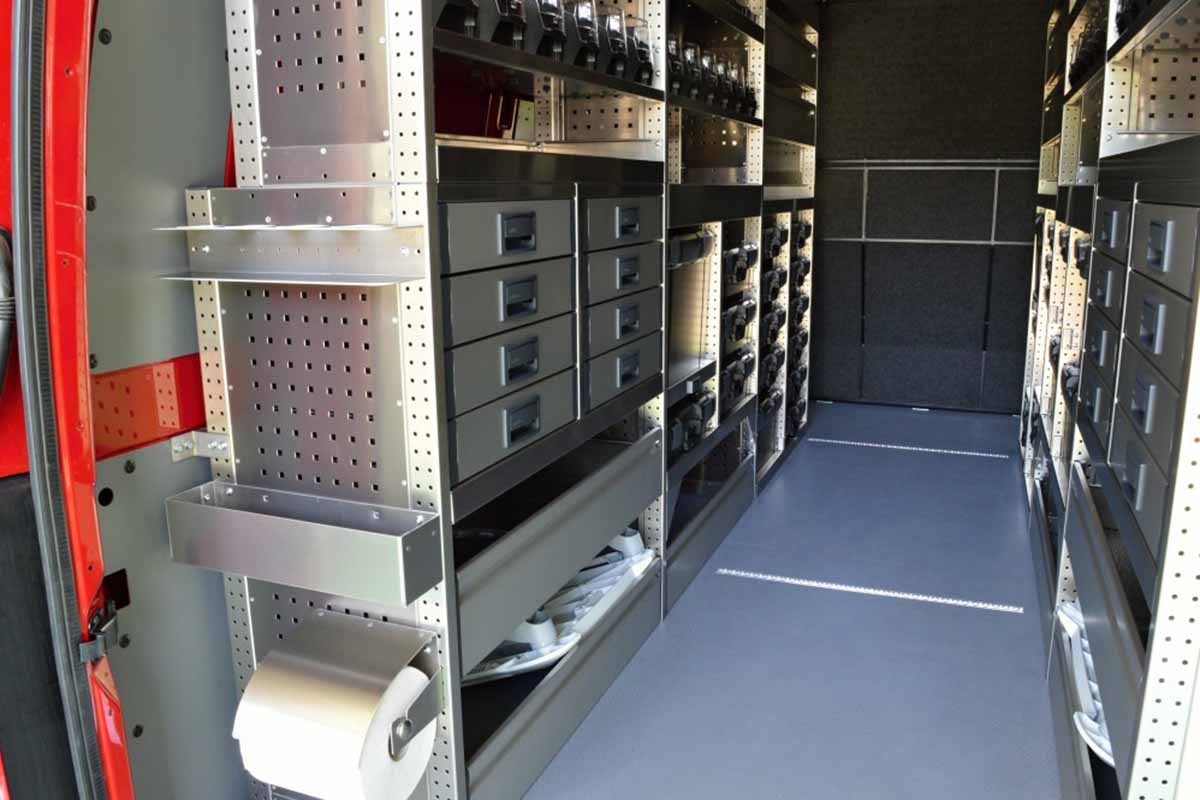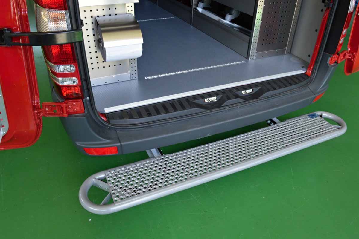 Představujeme další auto vestavbu do dodávky Mercedes Sprinter. Velké množství úložných komponentů a příslušenství, homologovaný nástupní schod, posuvná přepážka za kabinou řidiče.