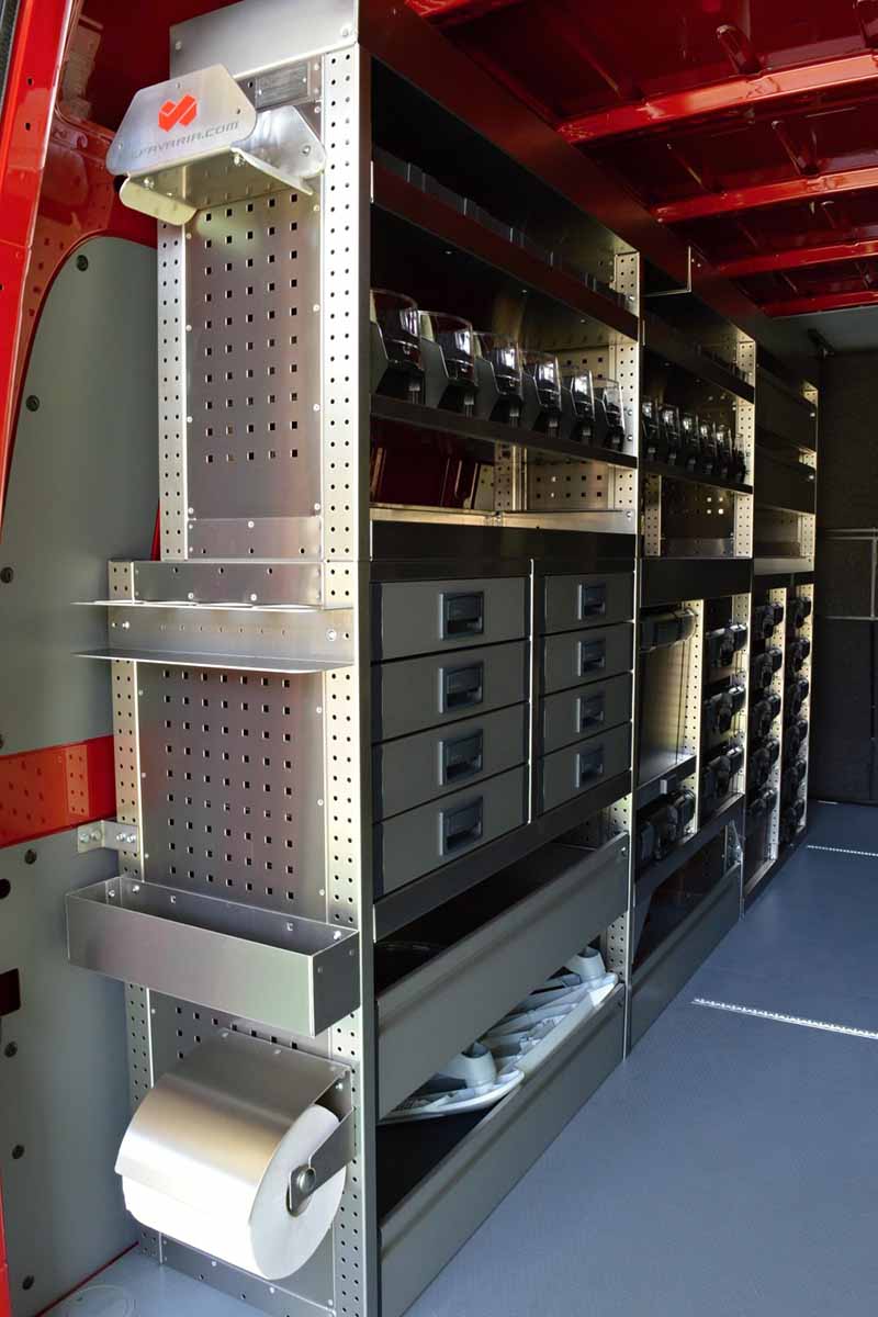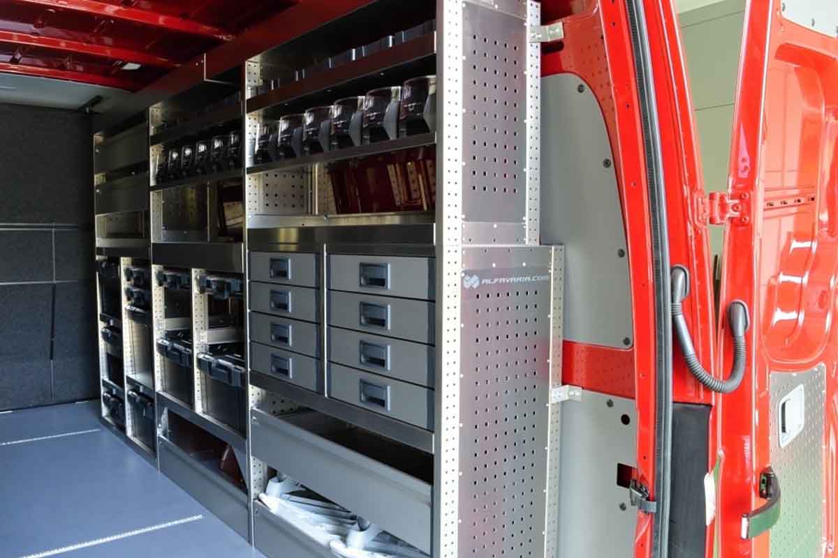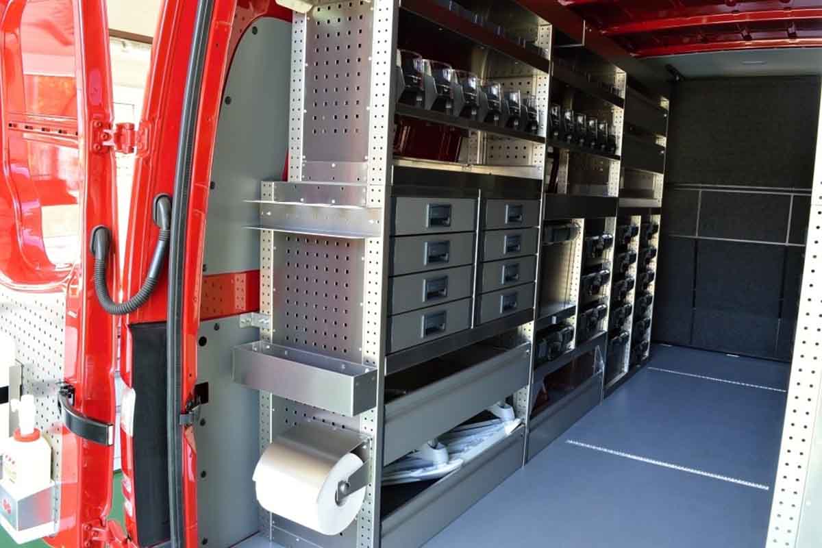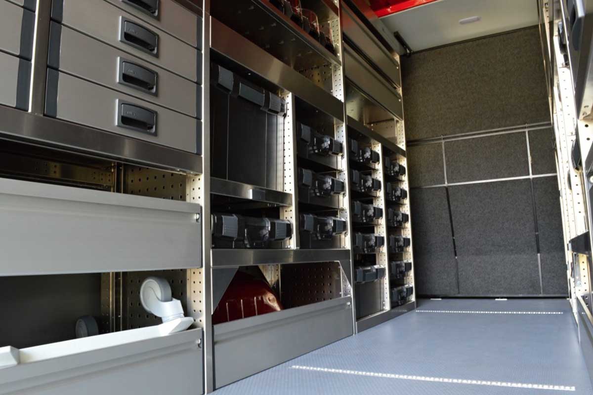 Představujeme další auto vestavbu do dodávky Mercedes Sprinter. Velké množství úložných komponentů a příslušenství, homologovaný nástupní schod, posuvná přepážka za kabinou řidiče.