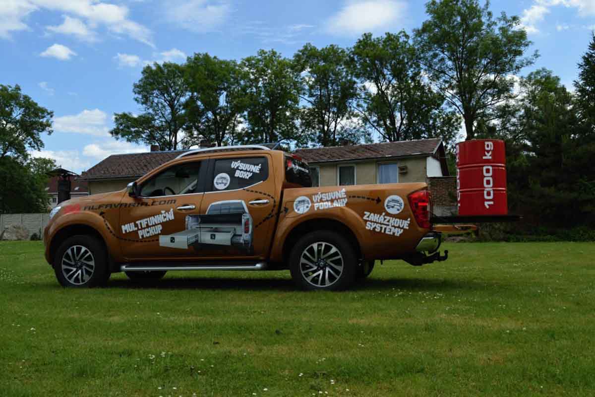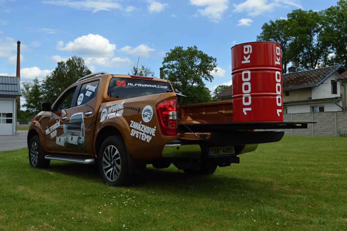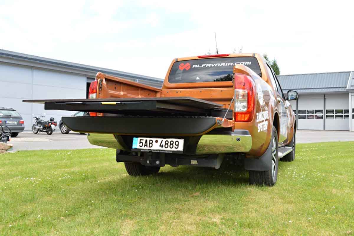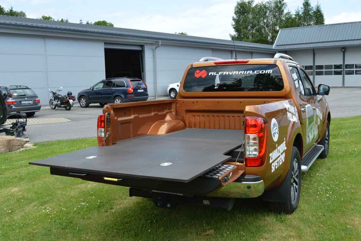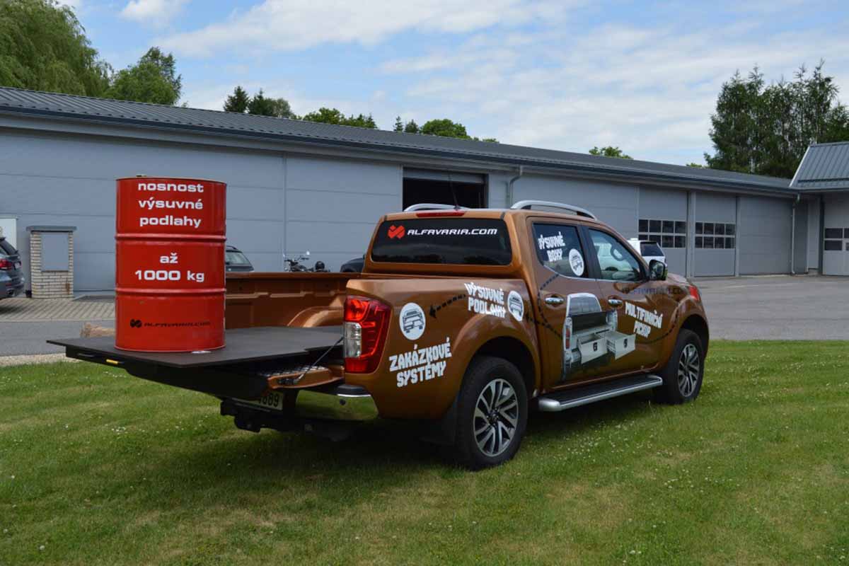 Představujeme výsuvnou podlahu se zvýšenou nosností pro vozy typu pick-up. Na podlahu naložíte náklad o hmotnosti až 1 t. Podlahu lze vysunout do 80 % délky, bezpečně ji zaaretujete v 5 pozicích. Vhodné pro všechny typy pickupů.