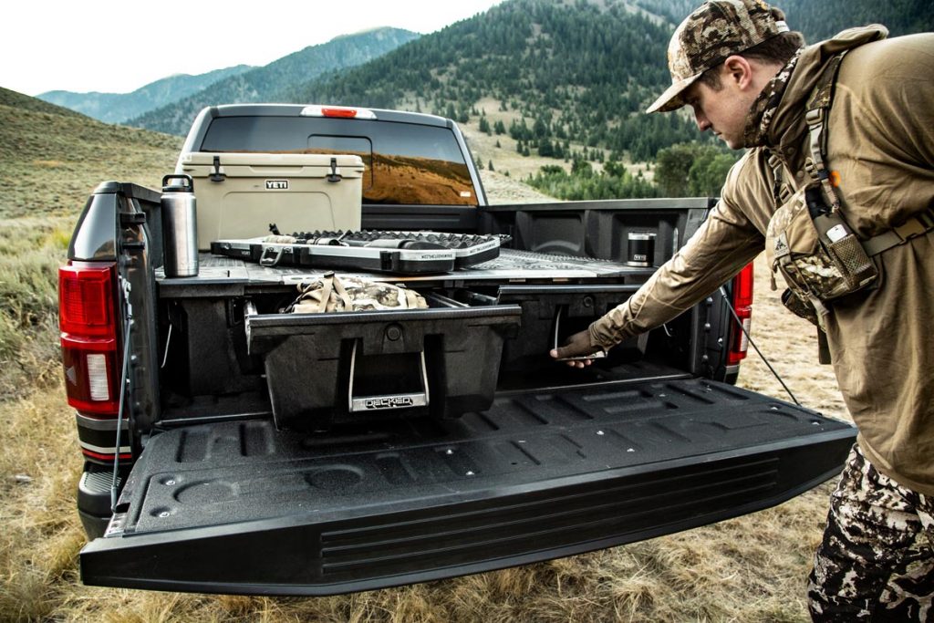 Ano, je to možné! Můžete kombinovat výsuvná plata s nosností 450 kg a výsuvné boxy DECKED, a to jak pro fullsize, tak i pro midsize pickupy. Systém DECKED je navržen tak, aby umožňoval jednoduchou instalaci dalšího příslušenství, jako jsou nosiče kol nebo police, a to bez toho, aby byl omezen prostor pro zásuvky.