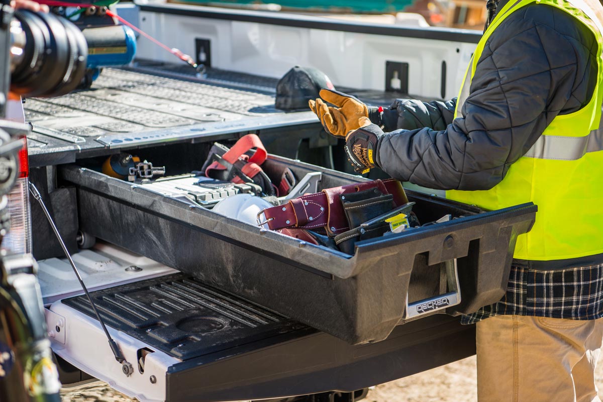 Pokud používáte pick-up v práci, potřebujete bytelné a bezpečné zařízení, kam byste mohli ukládat své pracovní pomůcky. Výsuvné boxy DECKED pomohou vám i vašemu týmu zachovat pořádek a dodržovat termíny. Všechny nástroje budete mít na dosah, v bezpečí, a když je budete potřebovat, jednoduše vysunete zásuvku. Zajistěte bezpečí svým věcem i lidem a předcházejte pracovním úrazům. Výsuvné boxy jsou odolné vůči vlivům počasí, bezpečné díky zapuštěným kovovým zámkům a jsou snadno ovladatelné.